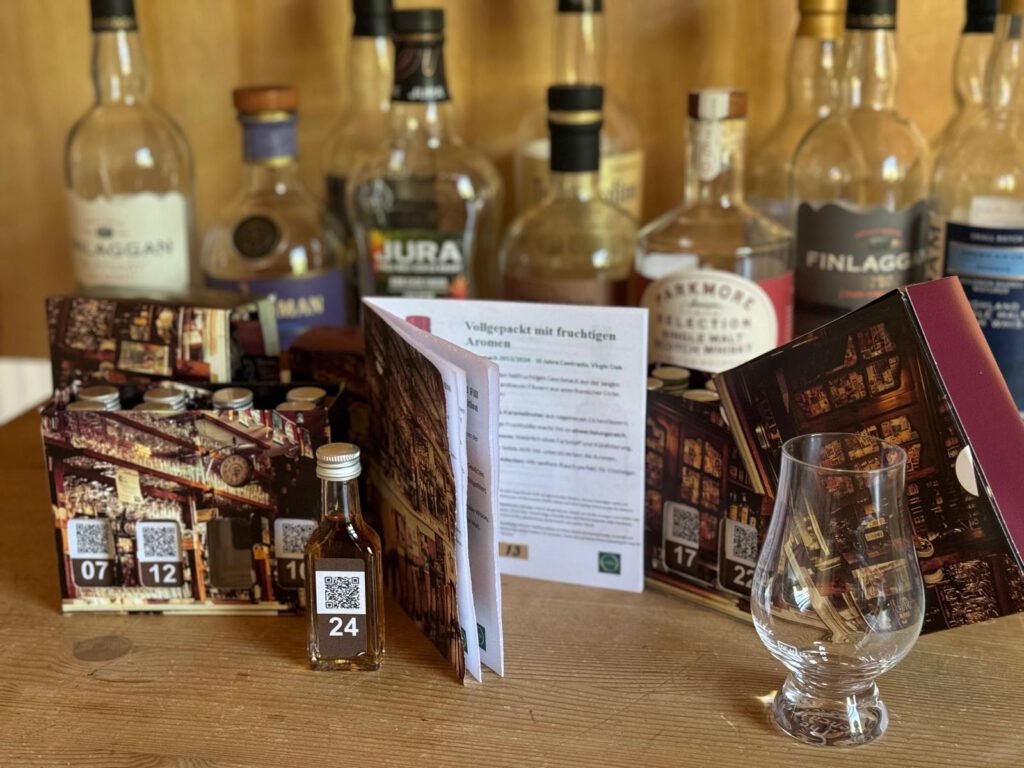 Außerdem legen wir ein gedrucktes Heft mit allen Infos der 24 Whiskys bei.